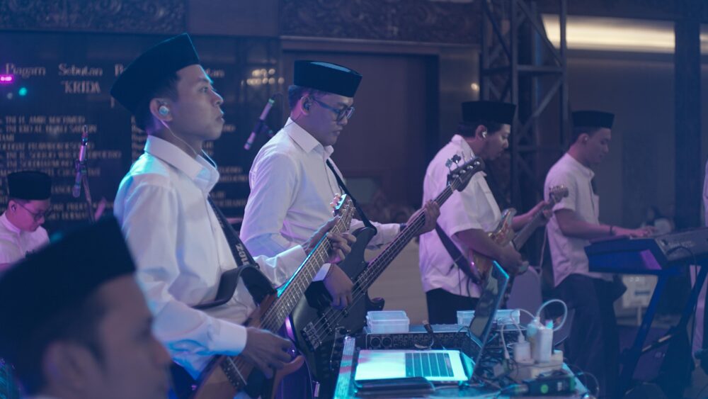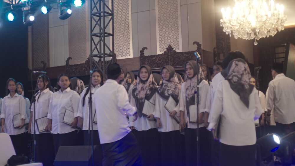Orkestra Santri Al-Ikhlas Ujung berkolaborasi dengan Paduan Suara Lintas Agama, menghadirkan harmoni musik dan vokal yang sarat makna. Melalui kolaborasi ini, mereka tidak hanya menampilkan alunan yang indah, tetapi juga memperlihatkan semangat kebersamaan dan cinta damai. Dengan demikian, musik yang mereka bawakan menjadi bahasa universal yang mampu menyatukan hati, menjembatani perbedaan, dan menumbuhkan rasa persaudaraan.